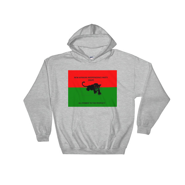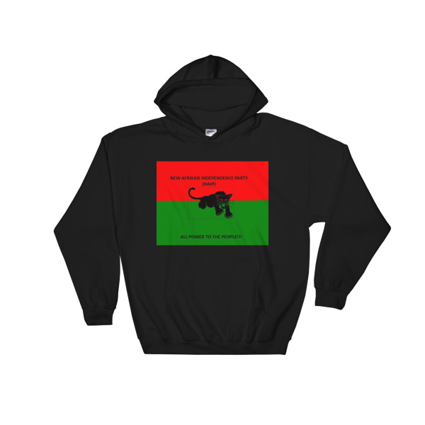 Classic New Afrikan Independence Party (NAIP) hoodie with red and green sections: square logo: Gildan 18500 Unisex Heavy Blend Hooded Sweatshirt